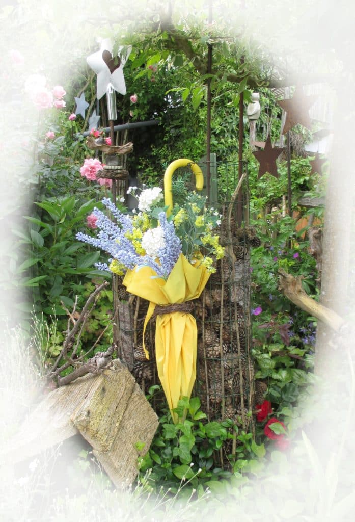 Normalerweise schützt uns der aufgespannte Schirm davor, im Regen nass zu werden. Umgekehrt schützt er nun die Blumen, sammelt Wasser für sie, damit sie nicht verwelken.
